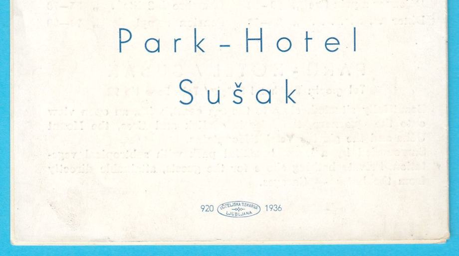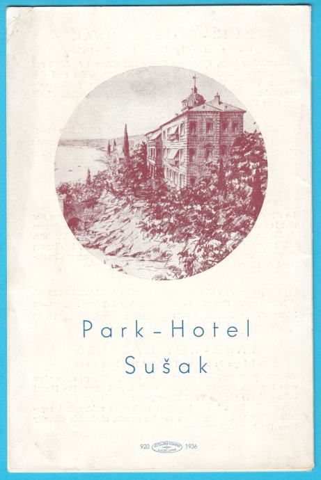SUŠAK (RIJEKA) PARK HOTEL predratna turistička brošura prospekt (1936)