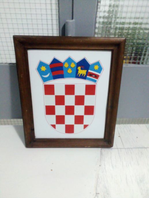 PRODAJEM GRB HRVATSKE NA METALNOJ EMAJLIRANOJ PLOČI ZA 15 E DIM SU 36X30 CM METALNA PLOČA JE 30X25 CM PREUZIMANJE SAMO NA ADRESI 091 9775033