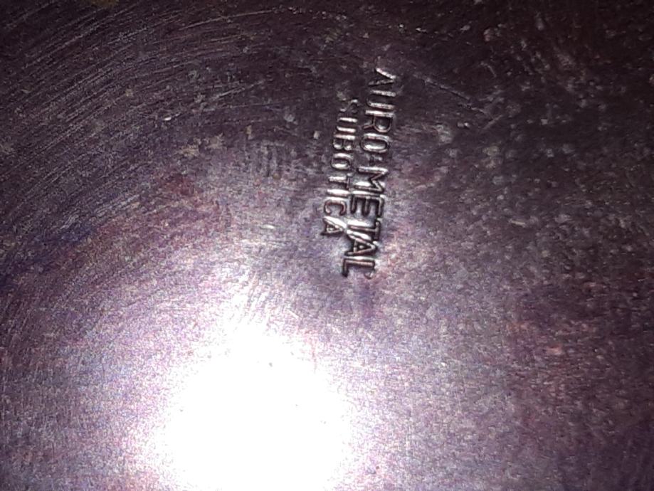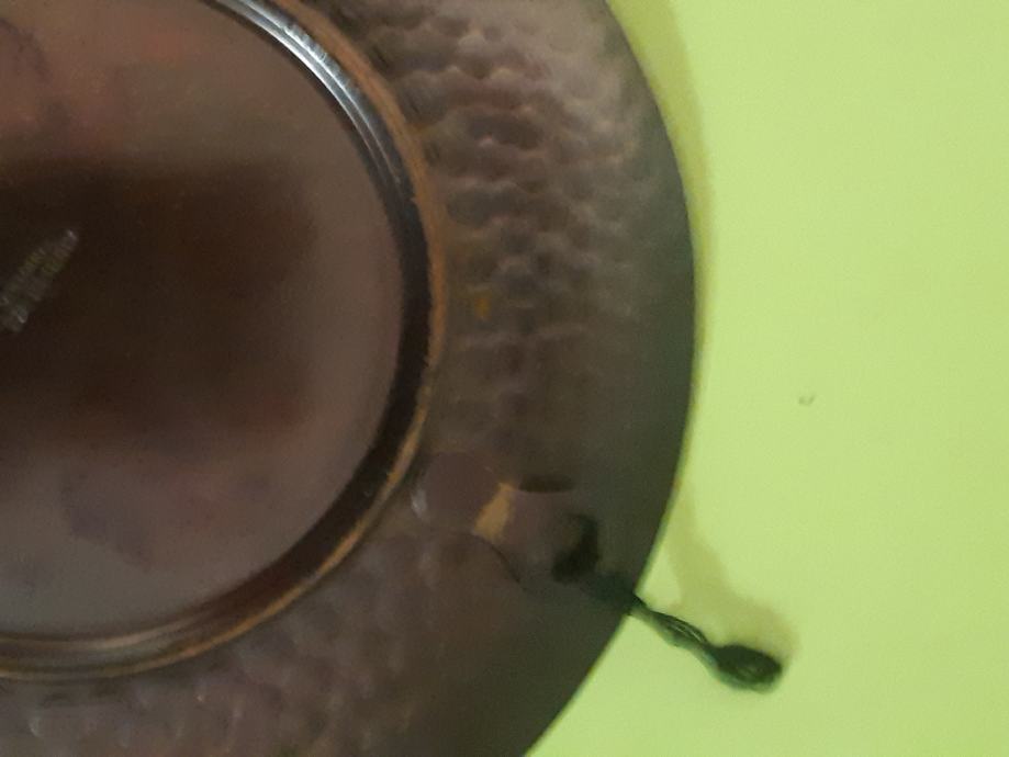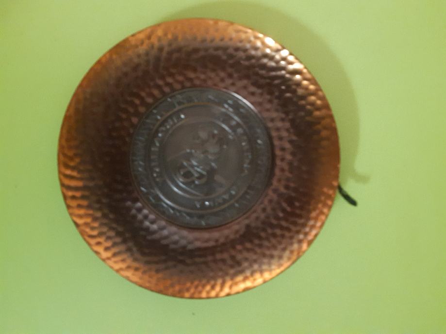 Bakreni u obliku zidnog tanjuriča.u vrlo dobrom stanju,promjera 12.5 cm. Šaljem poštom i tiskom.0958241802