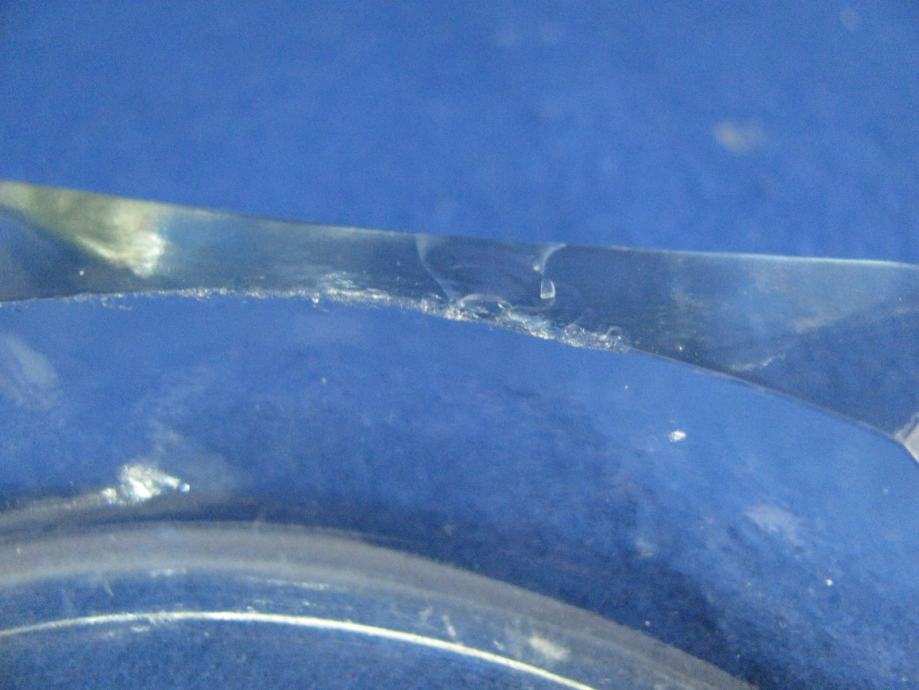 Debelo staklo, masivna, ima dva manja okrhnuća na samoj gornjoj plogi.