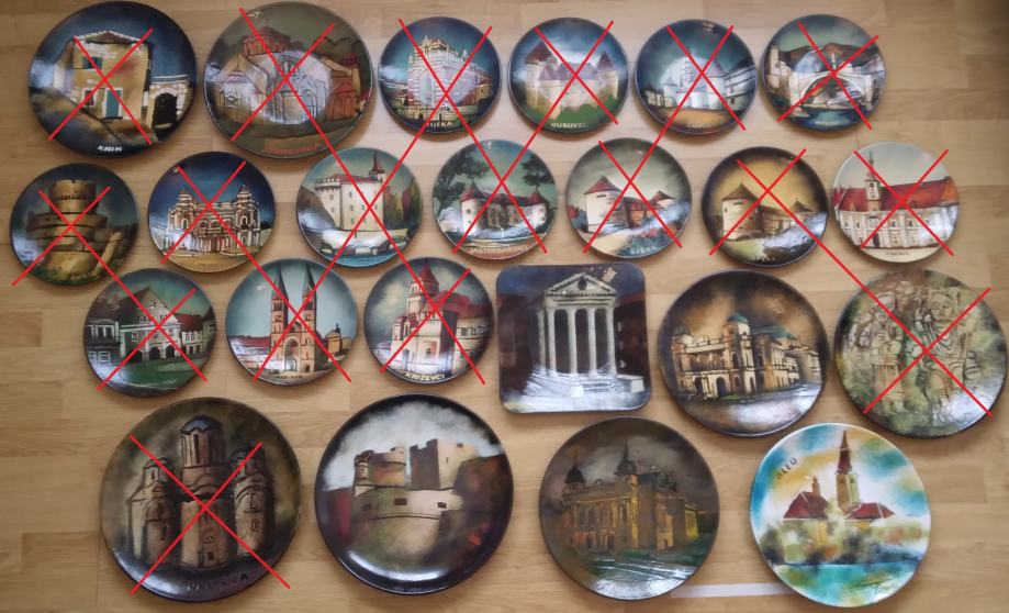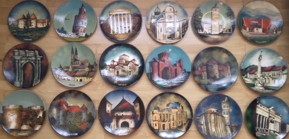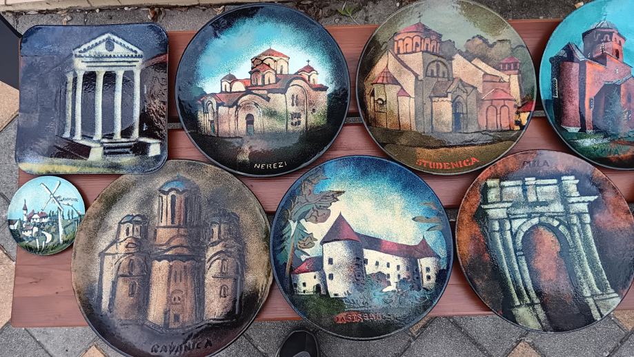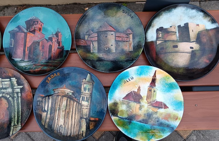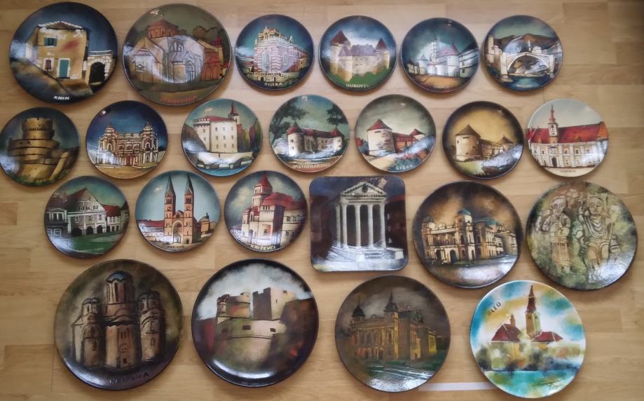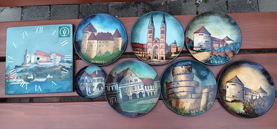 Kvalitetni metalni i emajlirani tanjuri iz 70-ih i 80-ih. Proizvođač Dekor Zagreb. Tanjuri su većinom i potpisani od autora (negdje se potpis izgubio zbog pranja pretpostavljam). Veličine oko 30cm++ u promjeru. Cijena im je 7€ po komadu. Svih preostalih 20 komada za 65€ (zadnje 3 slike)