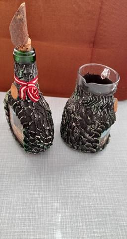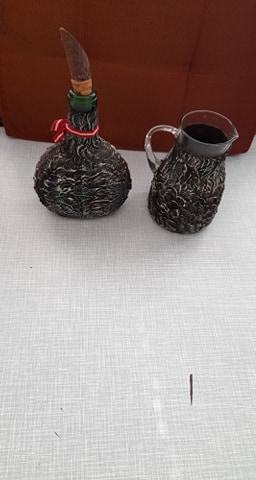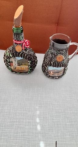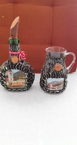 suvenir ukrasna staklena boca i stakleni vrč rucni rad komplet