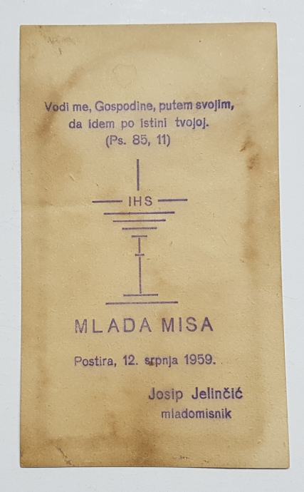 SVETA SLIČICA, MLADA MISA MLADOMISNIK JOSIP JELINČIĆ, 1959.