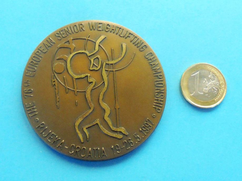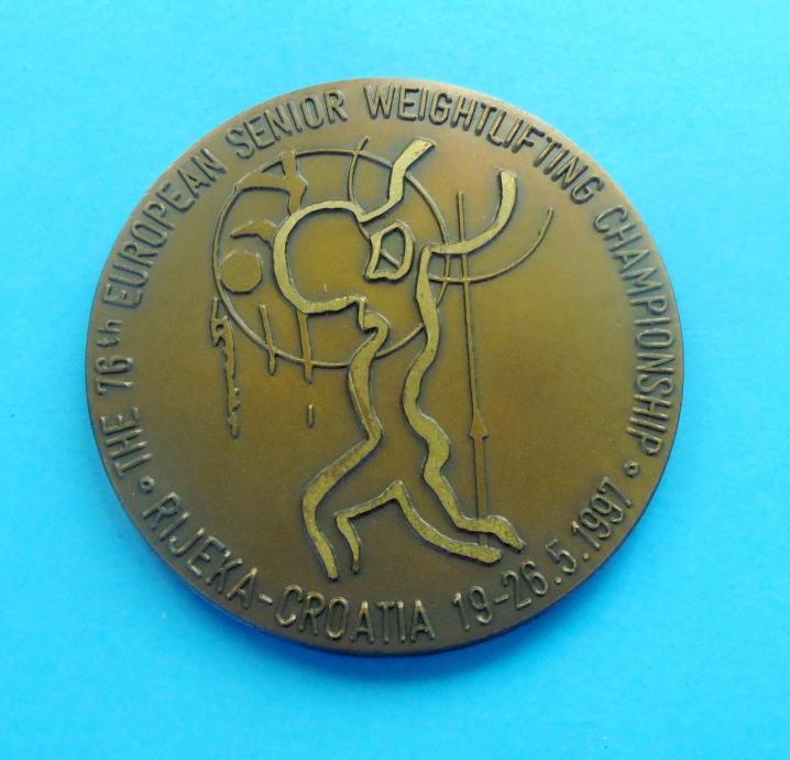 Vrlo lijepa službena medalja 76. EUROPSKOG SENIORSKOG PRVENSTVA U DIZANJU UTEGA 1997. (Rijeka - Hrvatska).
