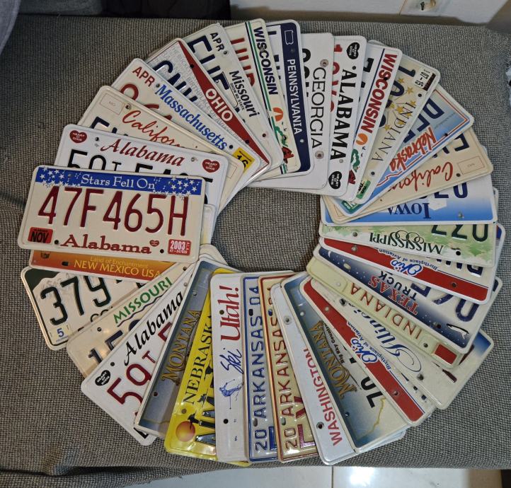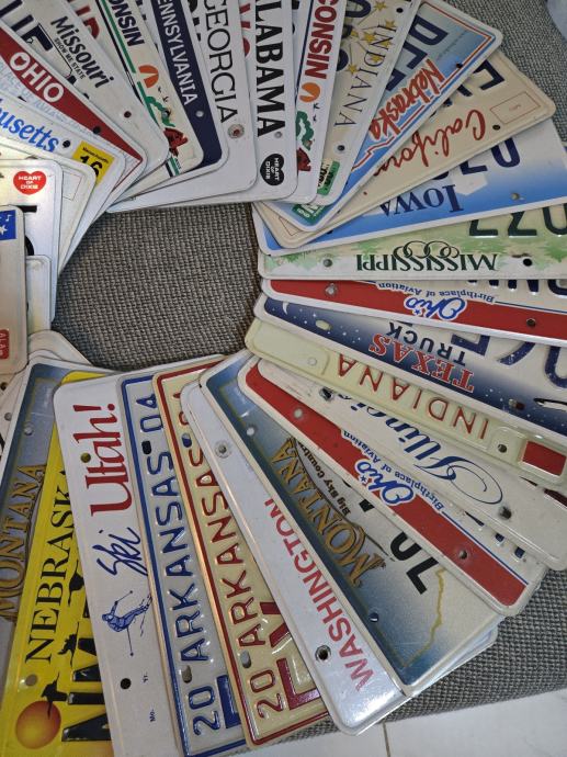 Veliki izbor USA tablica. Sve su tablice orginalne, koristene i odjavljene. Savrsena dekoracija za svaku garazu, vikendicu, man cave