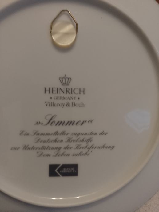 kolekcionarski tanjur Villeroy & Boch Heinrich "Sommer" ("Ljeto") proizveden u Njemačkoj. Bez oštećenja. Promjer 25 cm.
