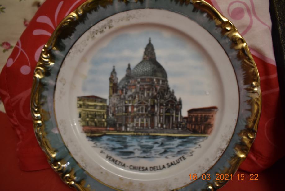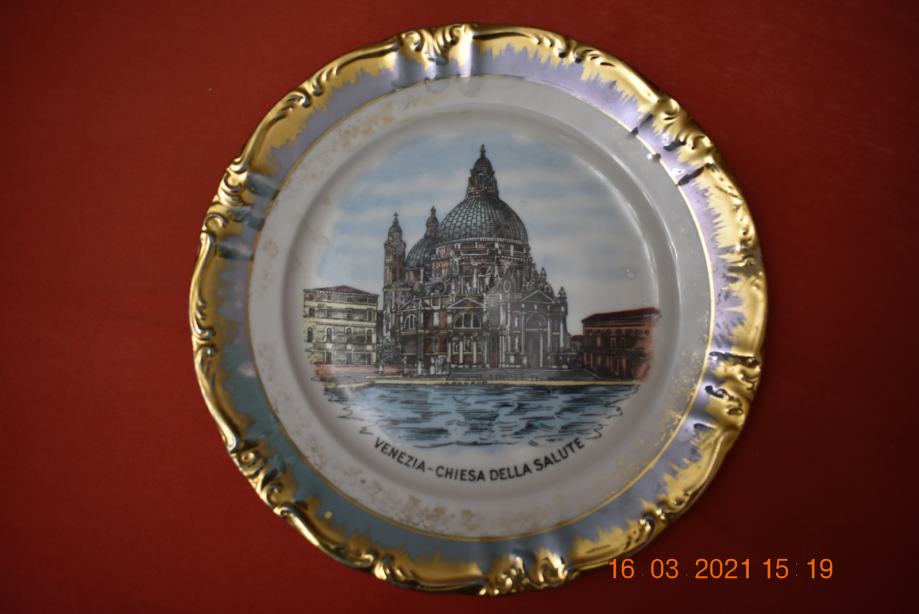 Tanjur promjera 26cm --VENEZIA CHIESA DELLA SALUTE sa pozlačenim rubom na pozadini je utisnut logo proizvođaća pogledajte slike stanje kao na slikama pogledajte i druge moje oglase