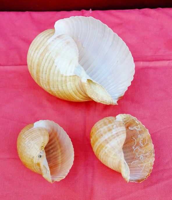 Puž bačvaš (Tonna galea) 3kom / 15€ (največa veličine cca 18-19cm), 7€ kom (dvije manje veličine cca 10-11cm).