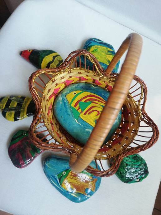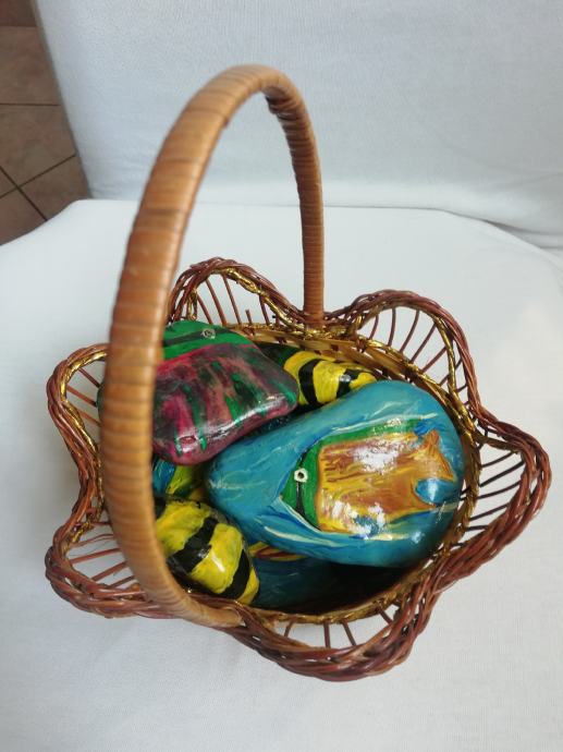 Pravo kamenje, uredjeno, obojano i lakirano. Zgodno kao ukras u teglama sa cvijecem.