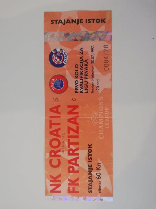Ulaznica NK Croatia- FK Partizan (5:0) 30.07.1997