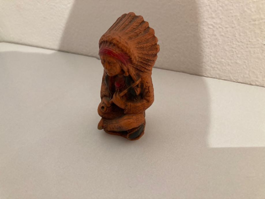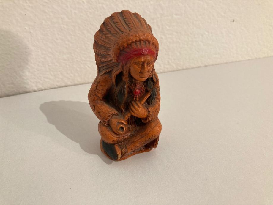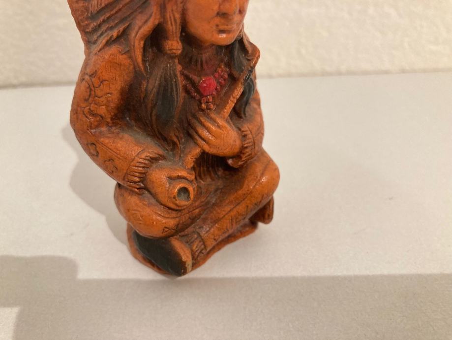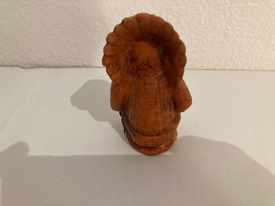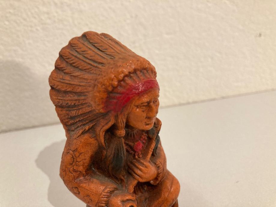 Vintage Hand Carved Wooden Indian Chief Smoking Peace Pipe