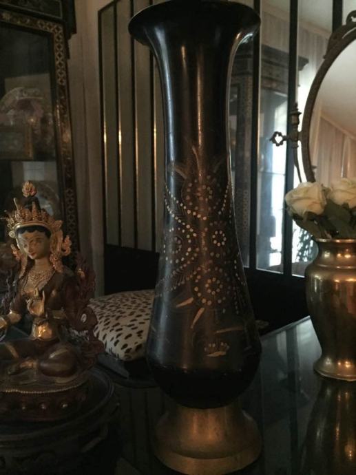 Indijska antikna metalna visoka vaza ručno oslikana..vrlo efektna ..vintage...made in India!