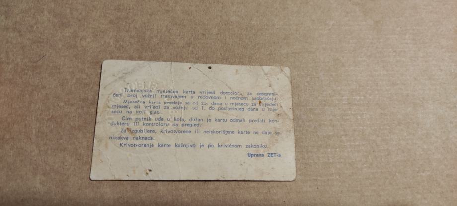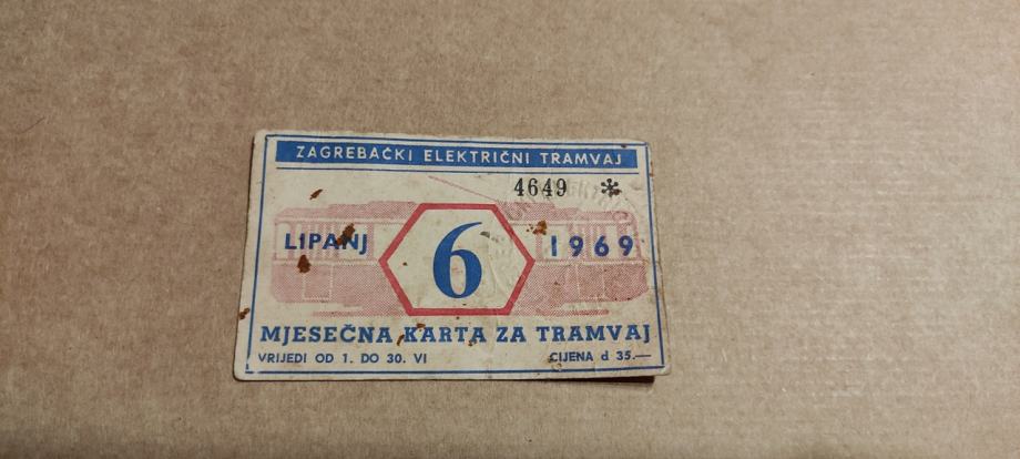 ZET - mjesečna karta za tramvaj - 1969 g.
