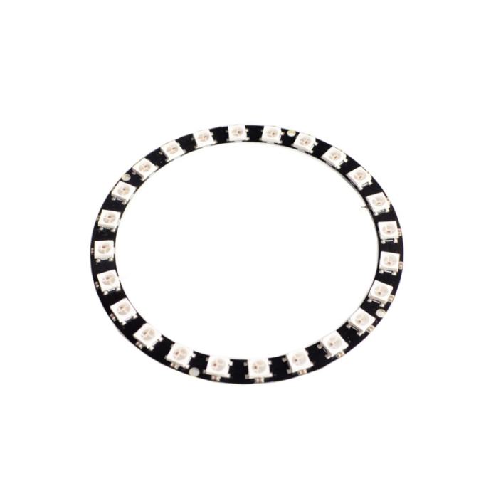 24-dijelni prsten WS2812 RGB LED-ica (poznatih i pod imenom Neopixel), 5V logika i napajanje, vanjski promjer 85 mm, unutarnji promjer 72 mm, visina 3.5 mm.