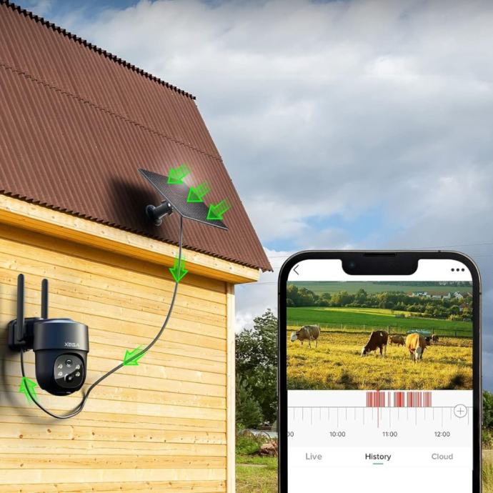 Zamislite da možete nadzirati vaš posjed bez brige o električnoj energiji ili internetu. Naše 4G kamere na solarni pogon omogućuju vam upravo to. S visokoučinkovitim solarnim panelom od 5 W i baterijom kapaciteta 9000 mAh, ove kamere rade neovisno o vanjskim uvjetima. Bez obzira na iznenadno isključenje ili nedostatak sunčeve svjetlosti, naše kamere su uvijek spremne za rad.