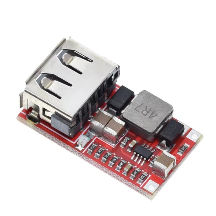 Step down modul s USB priključkom, 5.0-5.2 VDC na izlazu, 6-24 VDC ulaz, maksimalno 3A izlaz (potrebno je osigurati dodatno hlađenje za više od 2A), dimenzije 25.5x15 mm.