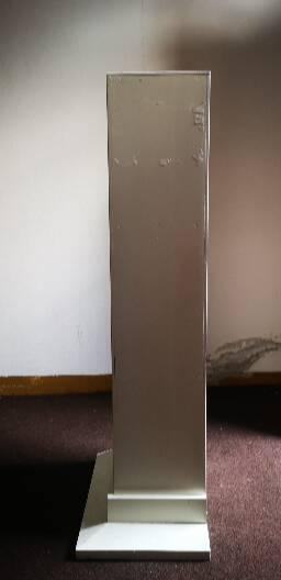 Prodajem 6 rabljenih bijelih stalaka/stupova pravokutnog oblika visine 121cm x 25 širine x 40cm duljine. Materijal korišten za izradu je medijapan.