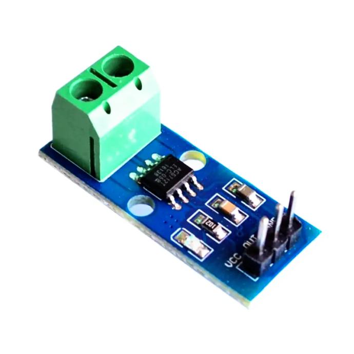 Modul se temelji na ACS712ELC-05B čipu koji može mjeriti struju jakosti +/- 5 A (AC ili DC) pomoću Hallovog efekta. Odgovarajući analogni izlaz je 185 mV/A. Radni napon: 5 V, dimenzije pločice: 31 x 13 mm.