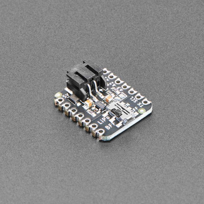Ovaj mali punjač LiIon/LiPoly baterija ima iste dimenzije kao i standardne QT Py pločice pa ga je jednostavno dodati na bilo koju od njih. Dovoljno je priključiti 3.7 V bateriju na njegov konektor, a kada QT Py spojite preko USB-a, automatski će početi punjenje baterije putem ugrađenog 200 mA punjača.