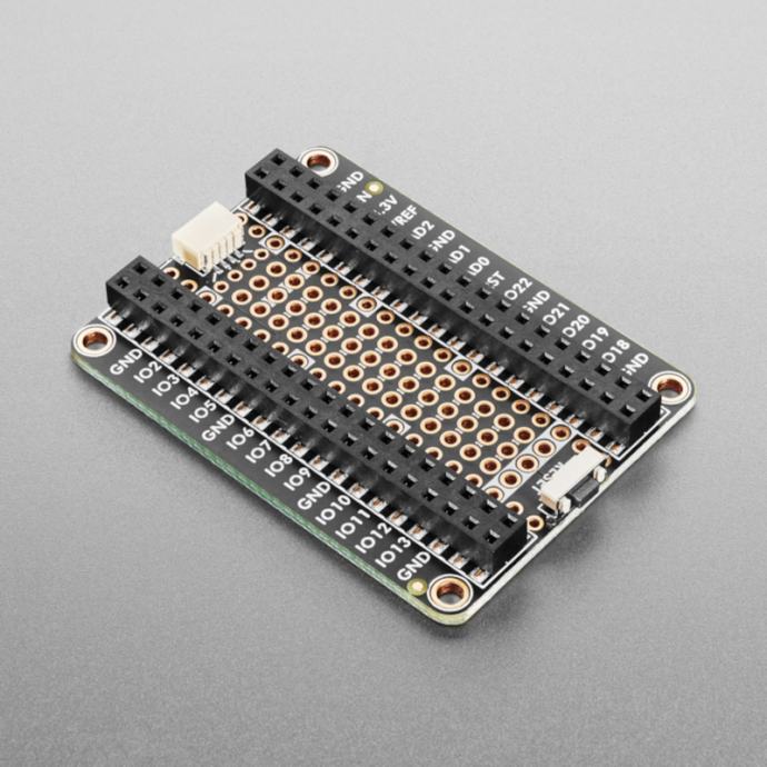 Pločica ima dvostruke headere, tako da kad utaknete Pico, imate dodatni red za priključivanje periferije, a svi pinovi su vidljivo označeni. Osim malog protoborda između headera, tu je i bočna reset tipka, kao i EasyC/Qwiic/Stemma QT konektor za lakše priključivanje I2C senzora.