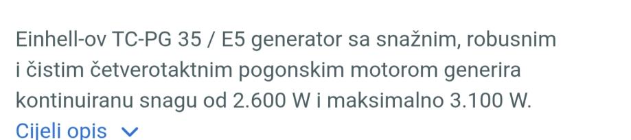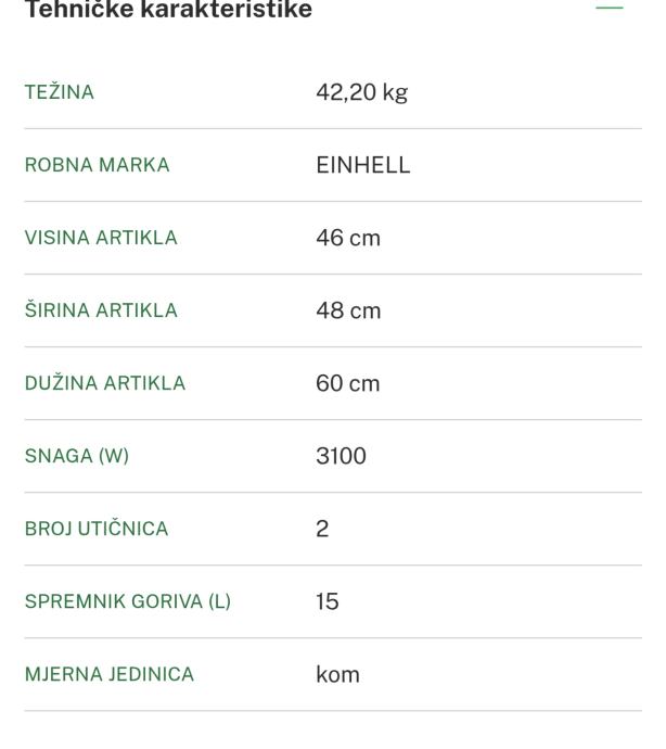 Prodajem ovaj agregat kupljen 5.9.2023. U pevexu. Nemam kotače koji idu snjim jer ih nikad nisam bila montirala pa su se negdje zagubili. Prodajem iz razloga jer zelim kupit manji i laksi za transport. Agregat uredno servisiran i održavan korišten samo par puta godišnje.