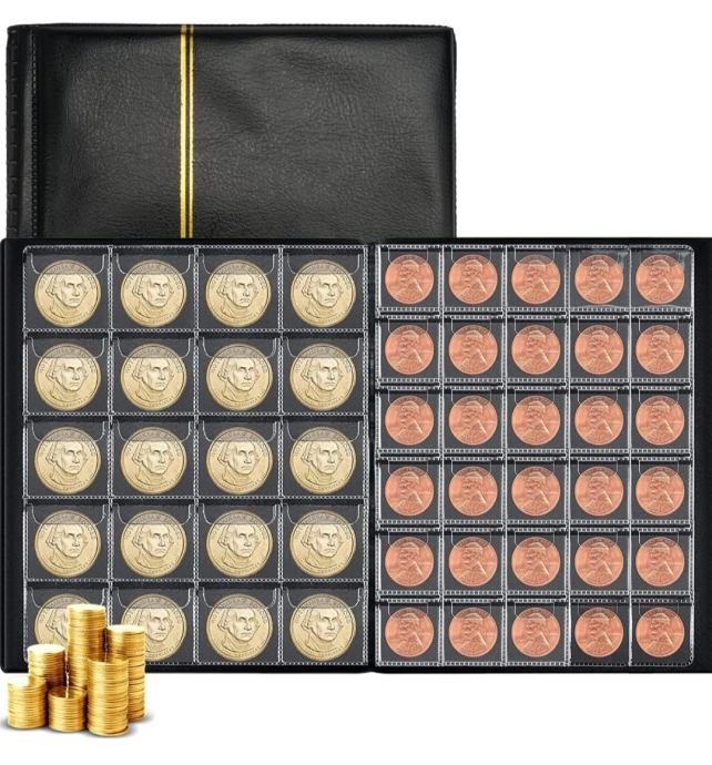 Album za novčiće s 250 džepova, Album za kolekciju novčića 21,8 x 16,8 cm, spomenar za novčiće, kolekcija novčića od 10 stranica, album za novčiće, marke, oznake, medalje, značke,za 2 vrste novčića 28mm i 35mm.