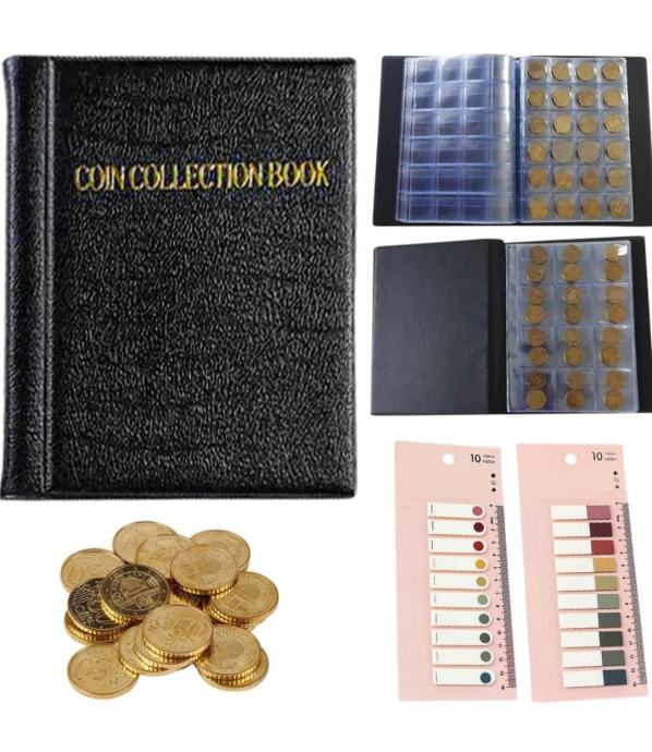 Spomenar za kovanice, album za kovanice s 480 džepova u 2 veličine za 30, 40 mm, album za zbirku kovanica.Uz album dolazi 400naljepnica .