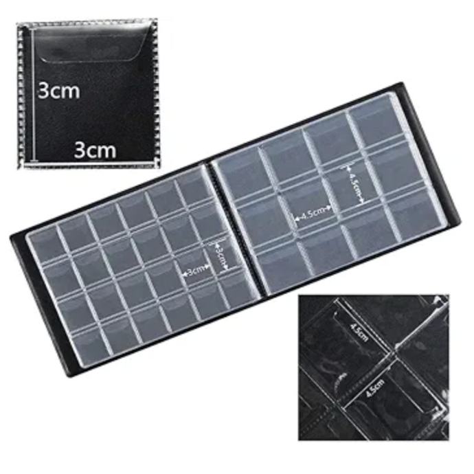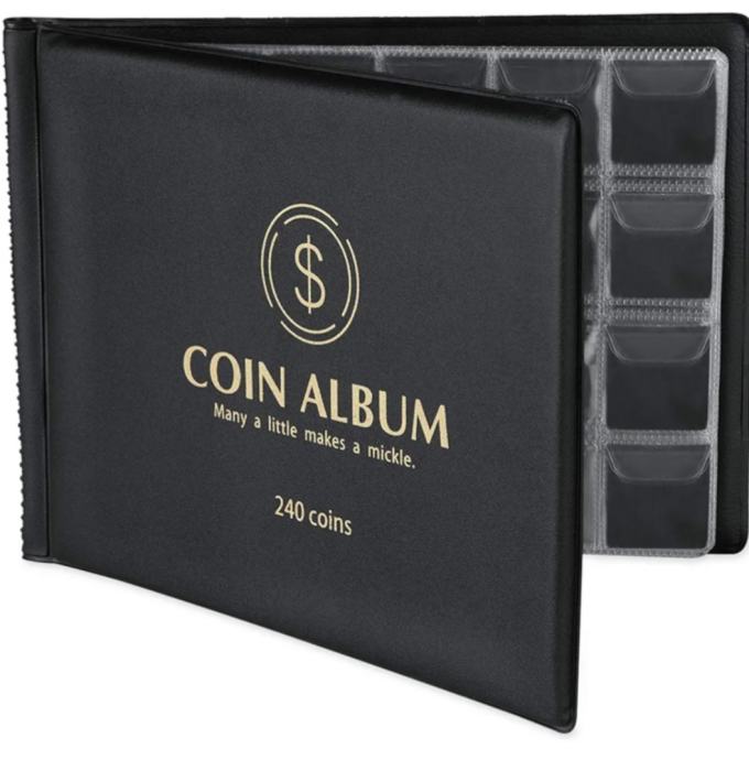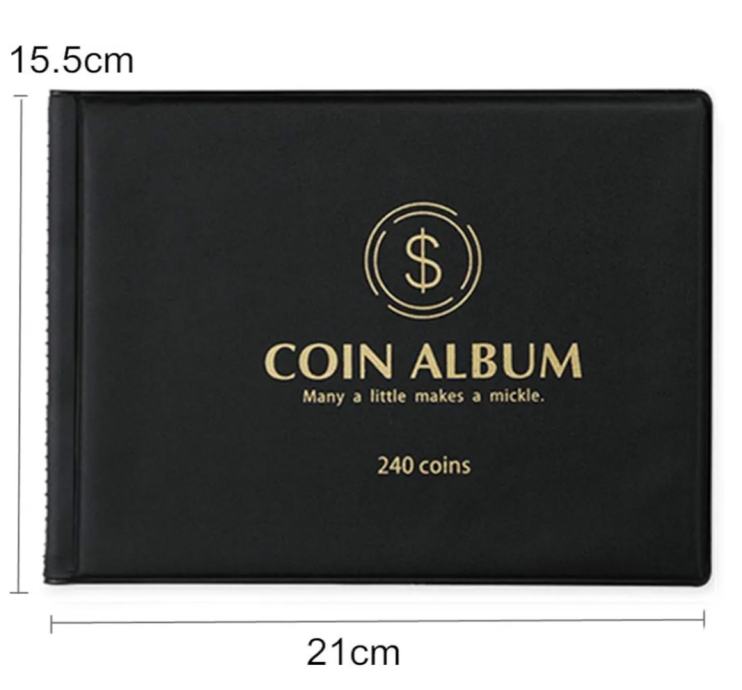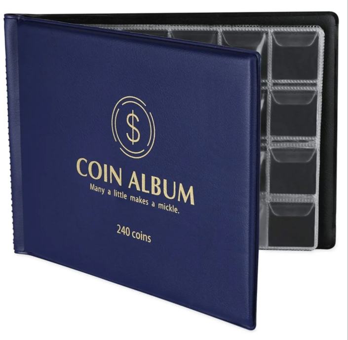 album za kolekcionare 240 džepova za kovanicevrste, rešetke: 3 x 3 cm (mala) i 4,5 x 4 cm. Mreža 3 x 3 cm ima 6 stranica sa 144 pregrade, mreža 4,5 x 4 cm ima 8 stranica sa 96 pregrada.Dostupno u plavoj i crnoj boji.