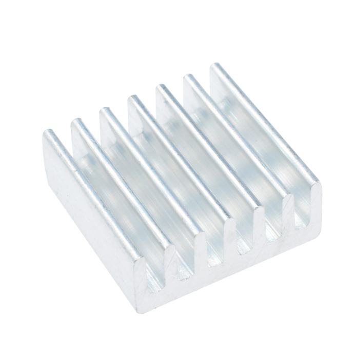 Aluminijski pasivni hladnjak za razne elektroničke komponente sa samoljepivom podlogom. Dimenzije: 13x13x7 mm.