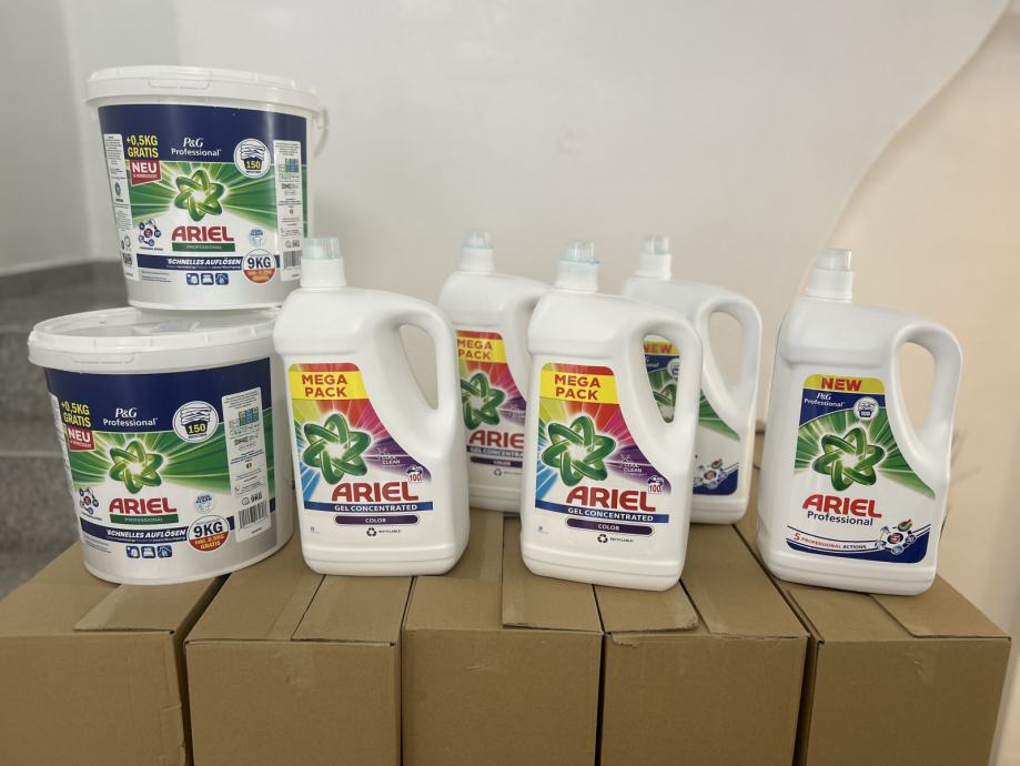 TEKUĆI ARIEL 5 L /15€€ za bjelu robu i šarenu PRAŠAK 9 KG. 150 PRANJA 30€€€. Moguća prodaja viške komda. 0955808692