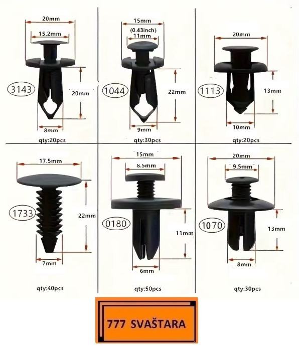 zakovice za obloge vrata, obloge blatobrana, ukrasne letve blatobrana, automobilski pribor