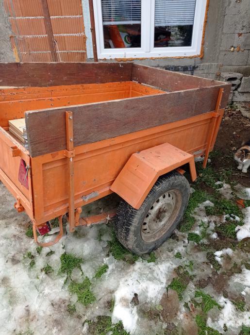 Auto prikolica s papirima i reg. Registracija vrijedi do 12.mj. 2027 g. Prodaje se jer je višak. Info. O919583629. Unutarnje mjere 97cm x 145cm.