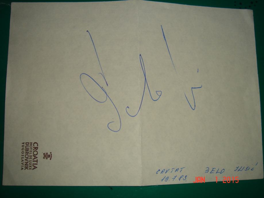 autogram čuvenog glazbenika Đelo JUSIĆ iz 1983 u Cavtatu