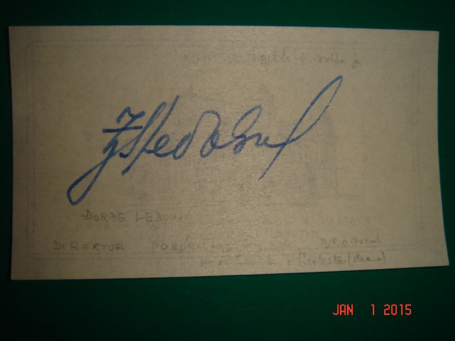 autogram umjetnika i književnika iz 60 -tih Đorđe Lebović