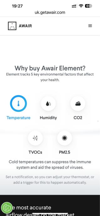 Uređaj prati kvalitetu zraka u stanu i sve podatke preko wi-fi mreže prikazuje na aplikaciji na mobitelu, i na vanjskom dospleju.
