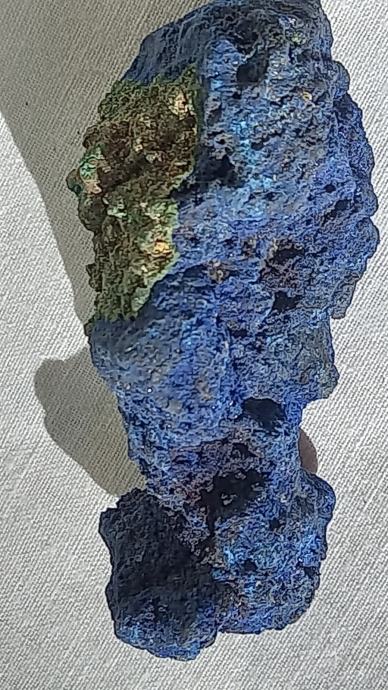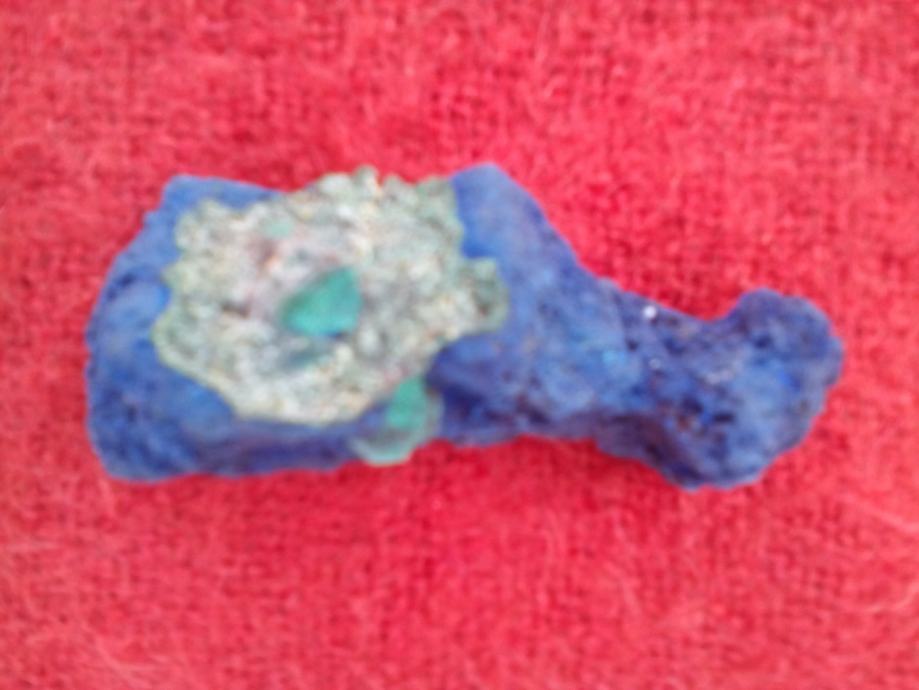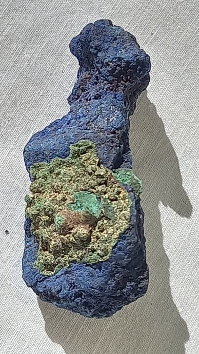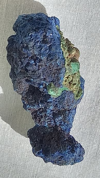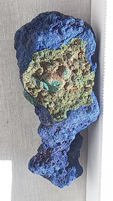 Na poseban nacin jedinstvo azurita i malahita..vrlo lijep duzine 7 cm..u najsirem dijeli sirine 3.5 cm...kupljen u specijaliziranoj trgovini u Zagrebu..zg
