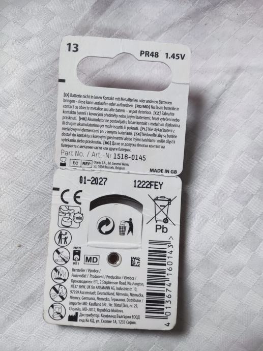 Baterije za slušni aparat i sl. 6kom. PR48 1.45V NOVE ORIG. ZAPAKIRANE