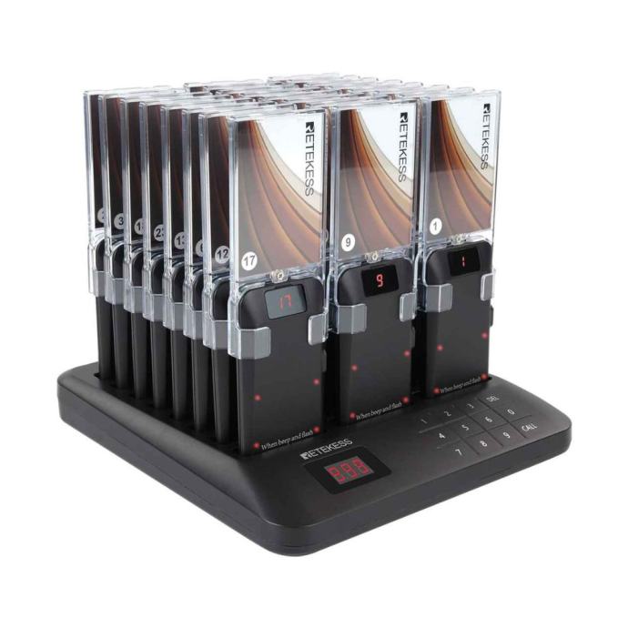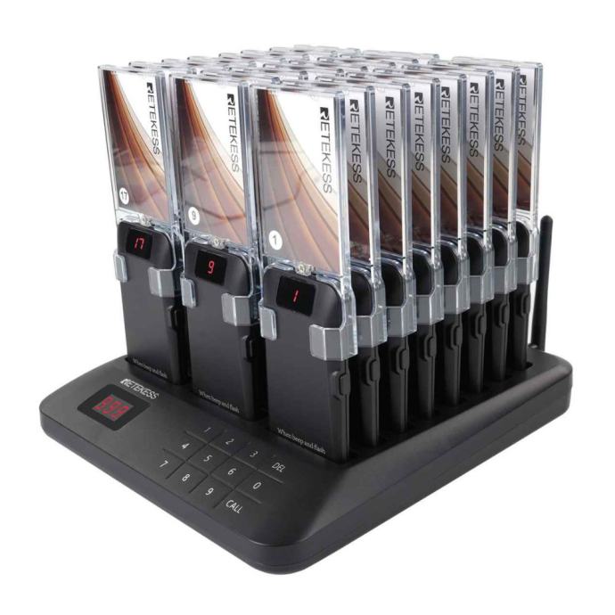 Ovaj model podržava do 997 pagera, što znači da se može nadograditi prema potrebi. Također dolazi s reklamnim stalcima, pa svaki pager može prikazivati logotip, akciju ili promotivnu poruku vašeg brenda.
