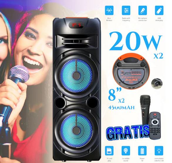 BIG ZVUČNIK 4500mah 8'' X2 SA GRATIS BEŽIČNIM MIKROFONOM I DALJINSKIM