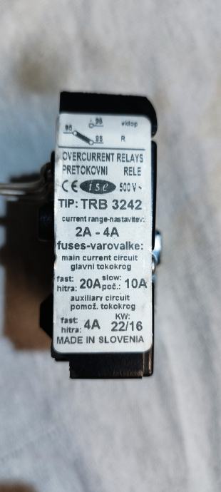 Bimetal 2-4A. Tip: TRB 3242. Kompatibilan sa sklopnicima KONČAR (CN 10, CN 16). Bimetal je novi.