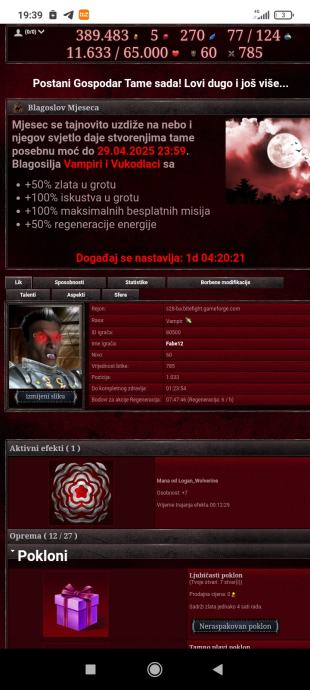 Account star 20 g ima oklop kupljen paklenim kamenjem i 5 paklenih kamenja lvl 60