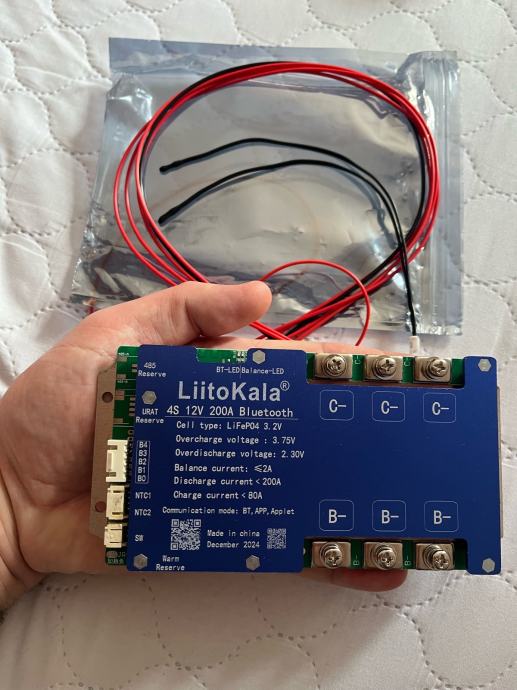 Novi BMS za litijske baterije 12.8V, 200A, sa bluetooth funkcijom i temperaturnim senzorima.