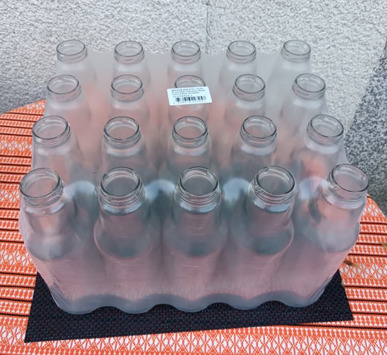 Boce staklene 0,75 litara sa pripadajućim čepovima za sok, sos paradajz i slično. Originalno zapakirani, osobni višak.