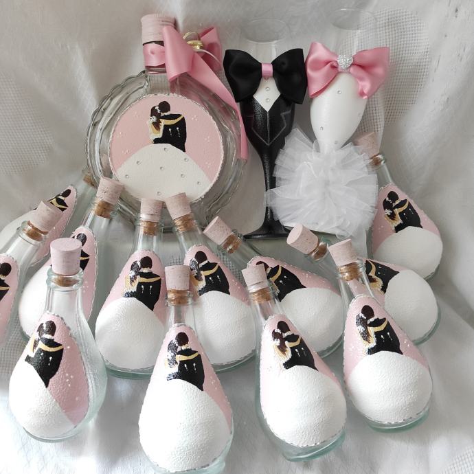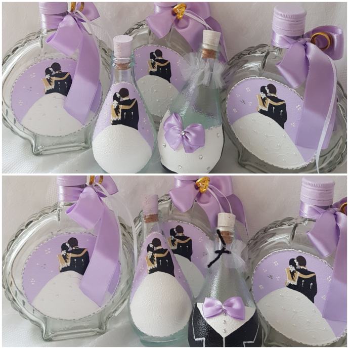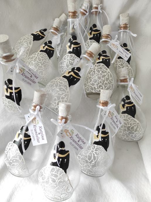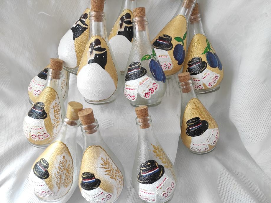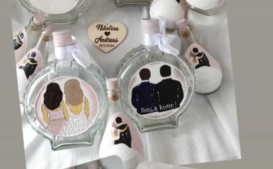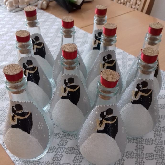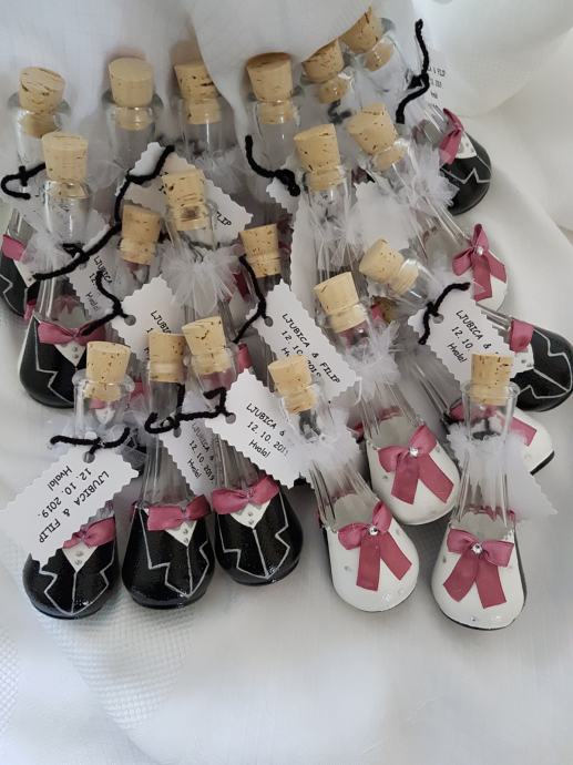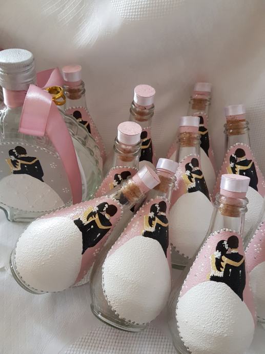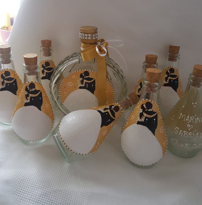 bočice za vjenčanje 1,60€/kom, čaše 4,7€/kom, anđeli i mladenci 1€kom prodajem kao i za druge prilike, facebook Mihart ZdenkaAndrej Mihaljević