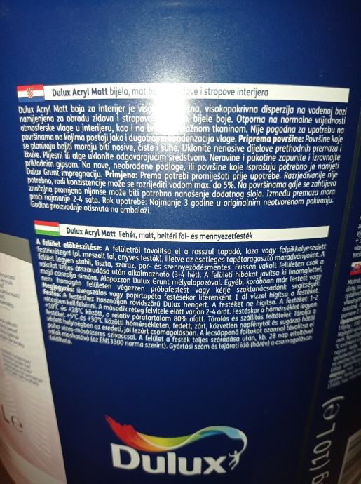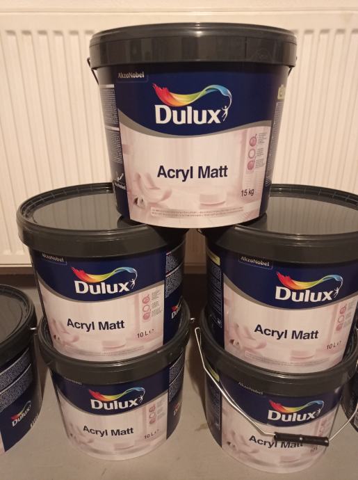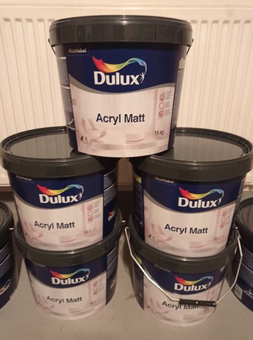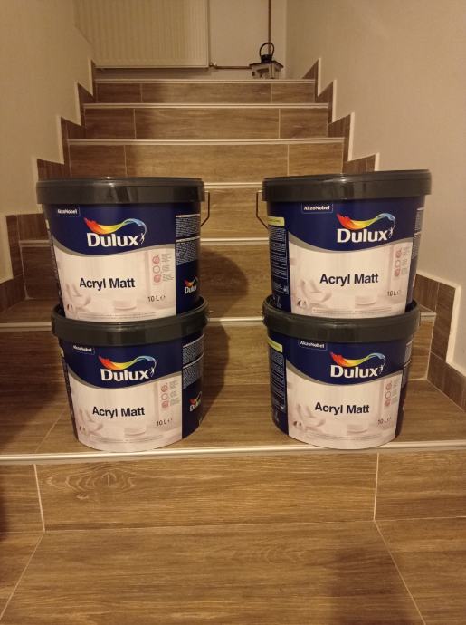 Prodaje se boja za zidove DULUX ACRYL MATT BIJELA 10 litara.Cijena po kanti 24€,a cijena za šest kanti boje je 23€ po komadu.