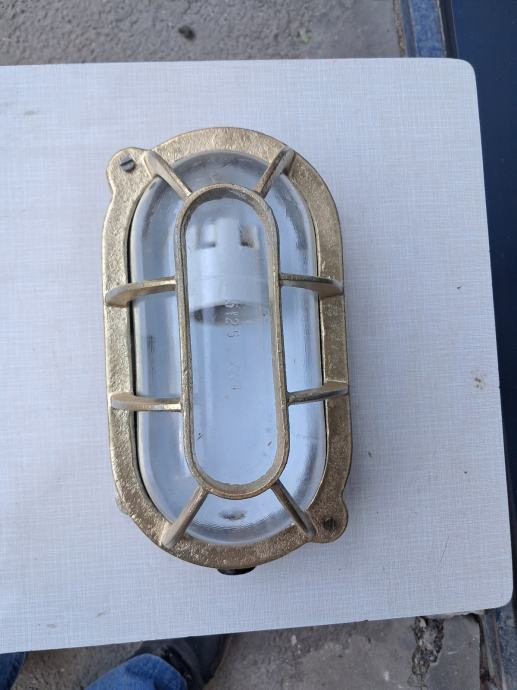 Brodska lampa u super stanju kompletna neoštećena ispravna dimenzije Duž 23cm,širina 13cm visina 11cm ukupno ima 6kom iste.
