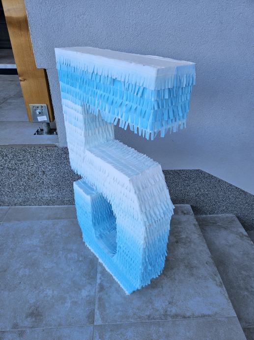 Prodajem broj 5 od stiropora ukrašen plavim krep papirom. Stanje kao na slici. Veličina cca 96×50cm.