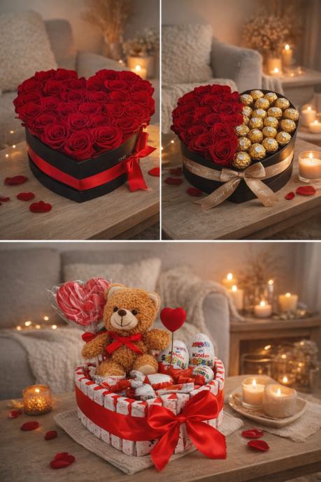 Prodaja satenskih ruza u kombinaciji sa slatkišima, odlican izbor za poklon.