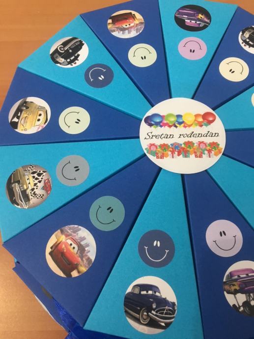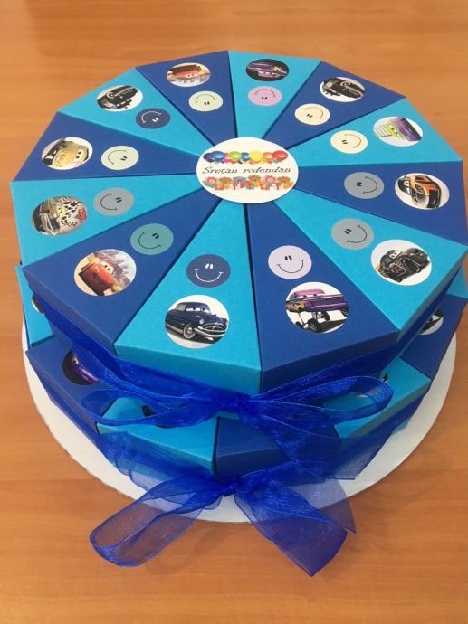 Samosložive kutijice (nema ljepljenja) u obliku kriške torte izrađene od 250 gramskog hamer papira u 14 boja koje birate po želji (zadnja slika u galeriji).