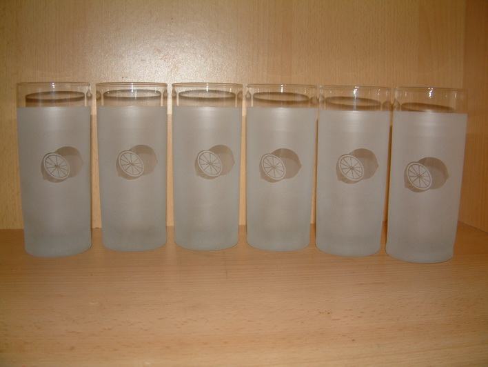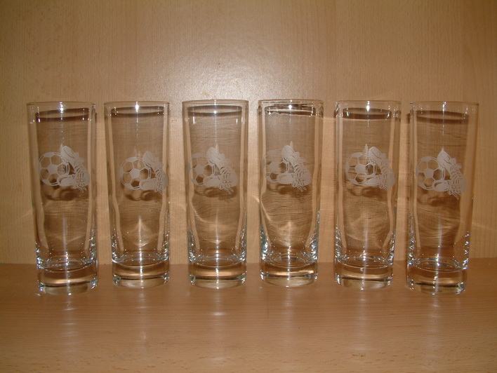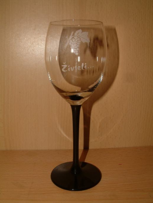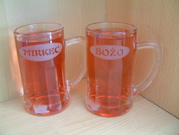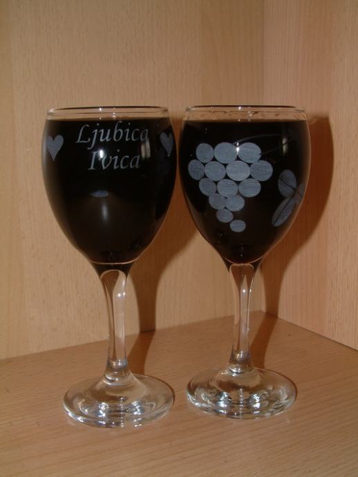 Čaše sa raznim motivima koji su aplicirani metodom pjeskarenja (gravura, graviranje), cijena čaša se kreće od cca. 5 kn za manje čaše, 8 Kn do 10 Kn za veće čaše...